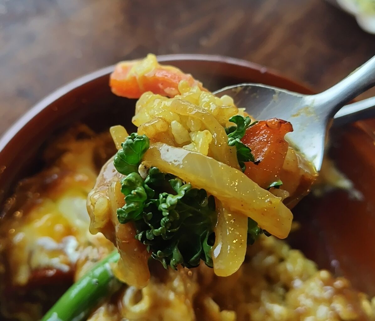 ライスの層も玉ねぎと混ざり