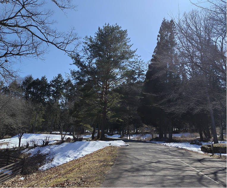 先日の雪が解けてないようでまだ残っている。