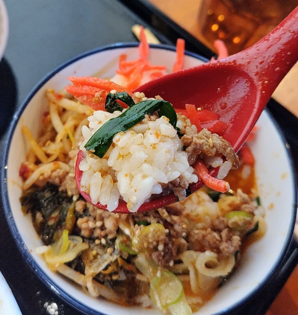 とんこつスープにピリ辛ミンチと