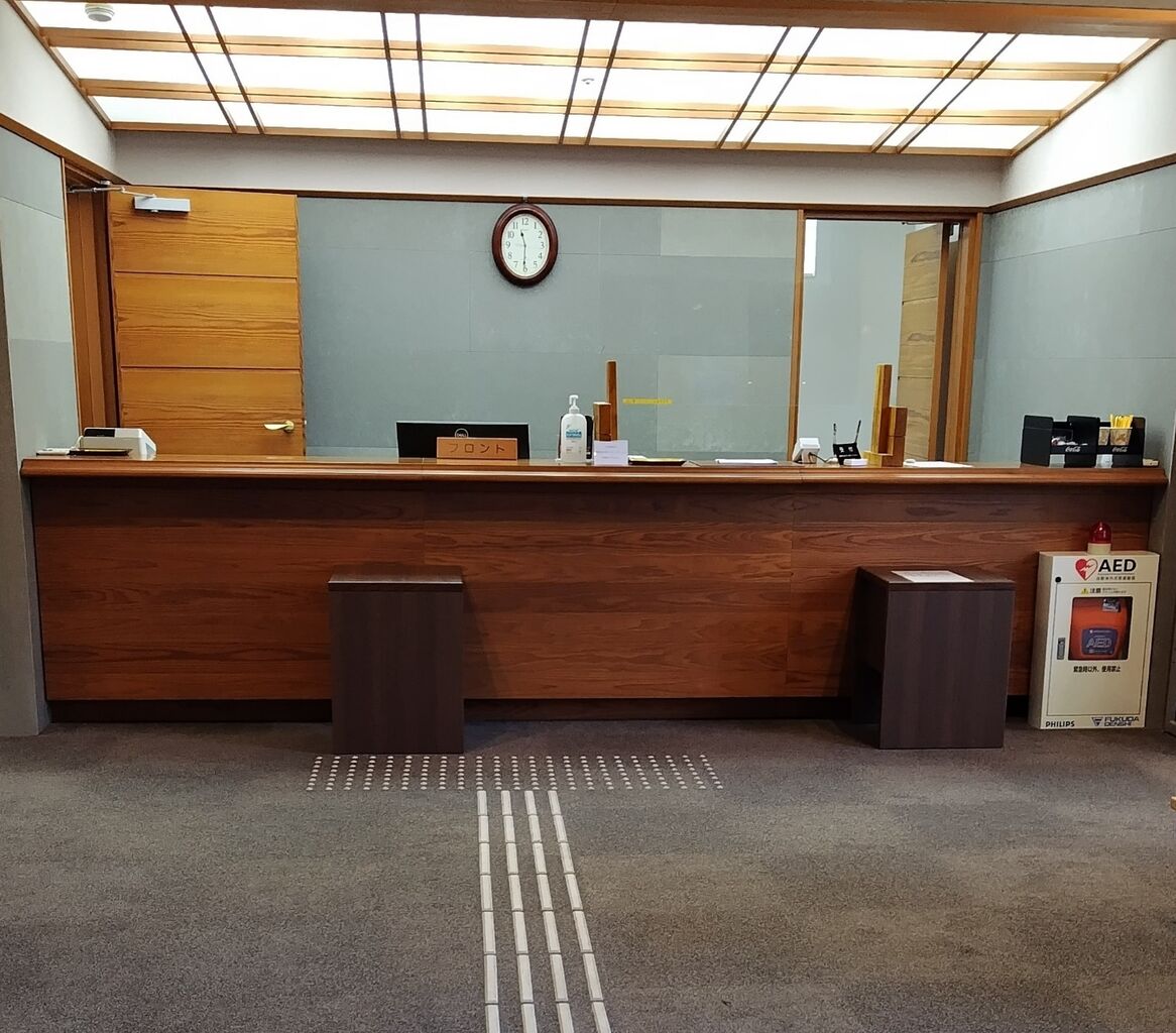 フロントで受付。