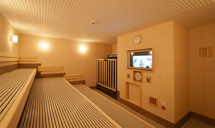 1Fが洗い場とお風呂、そして水風呂、ととのいスペース。