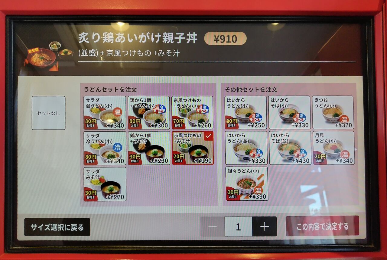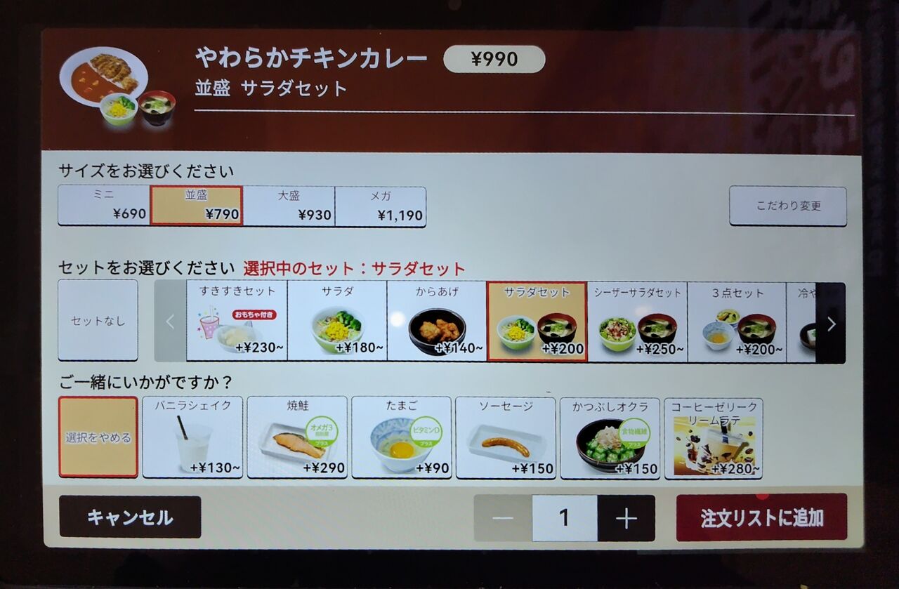 +『サラダ、味噌汁』セットをポチる。