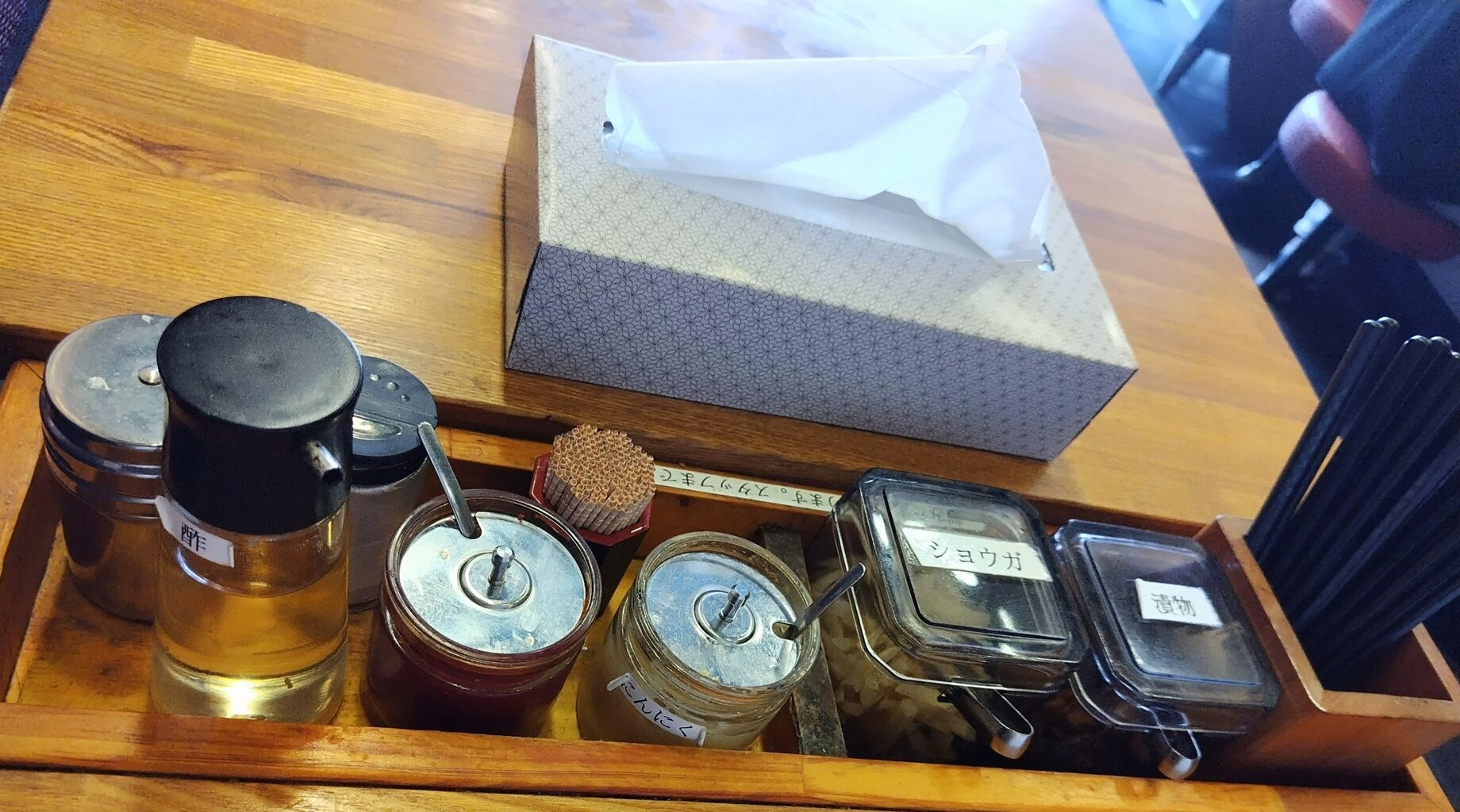 きゅうりの漬物、刻み生姜、おろしニンニク、豆板醤、酢と揃っている。